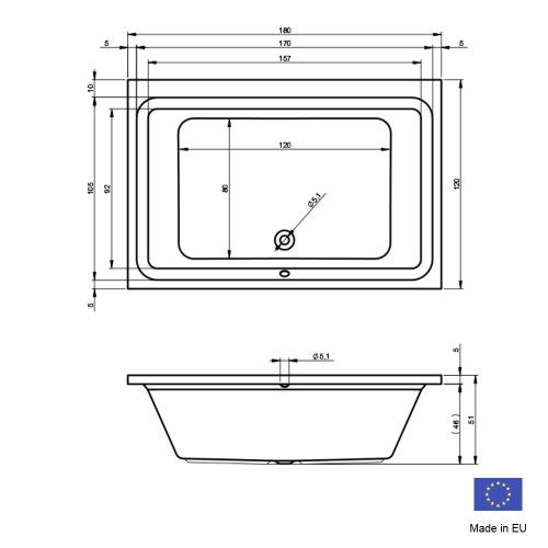 Rechteck Badewanne Cuxhaven 180 x 120 x 51 cm Acryl 120 x 180 tiefe Duo-Markenwanne
